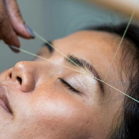 Augenbrauen zupfen mit Faden